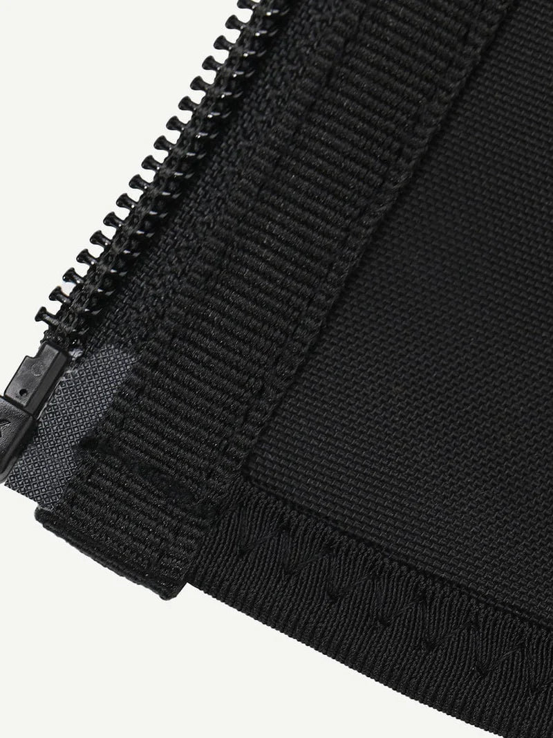 Double waist straps using hook-and-loop fasteners (Velcro) for adjustable tightness, added firmness, and thermal retention.